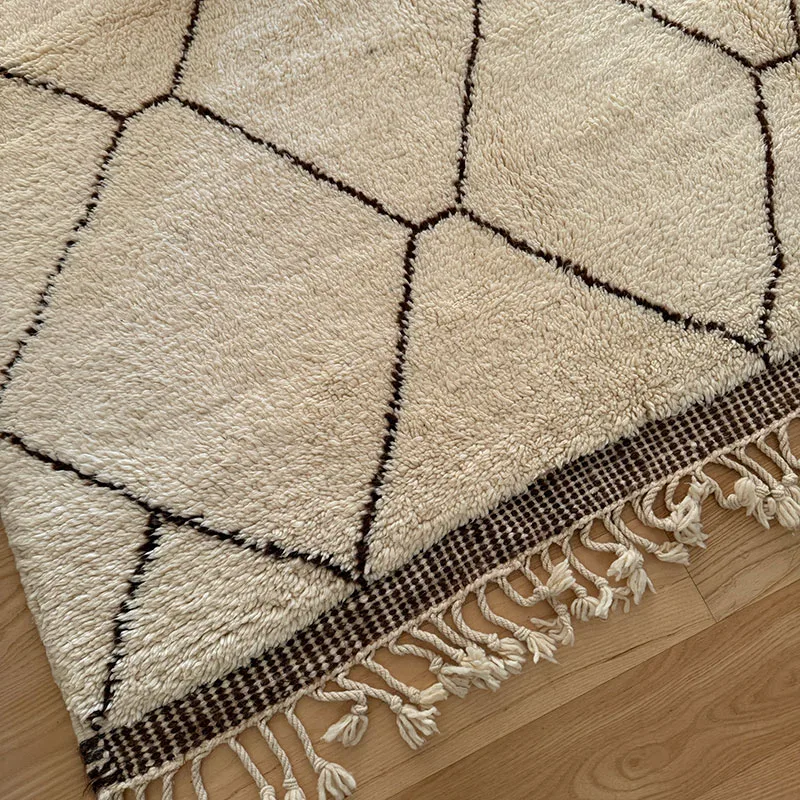 Tæppet er sjældent – i en smuk lys uld med brunt bikube mønster