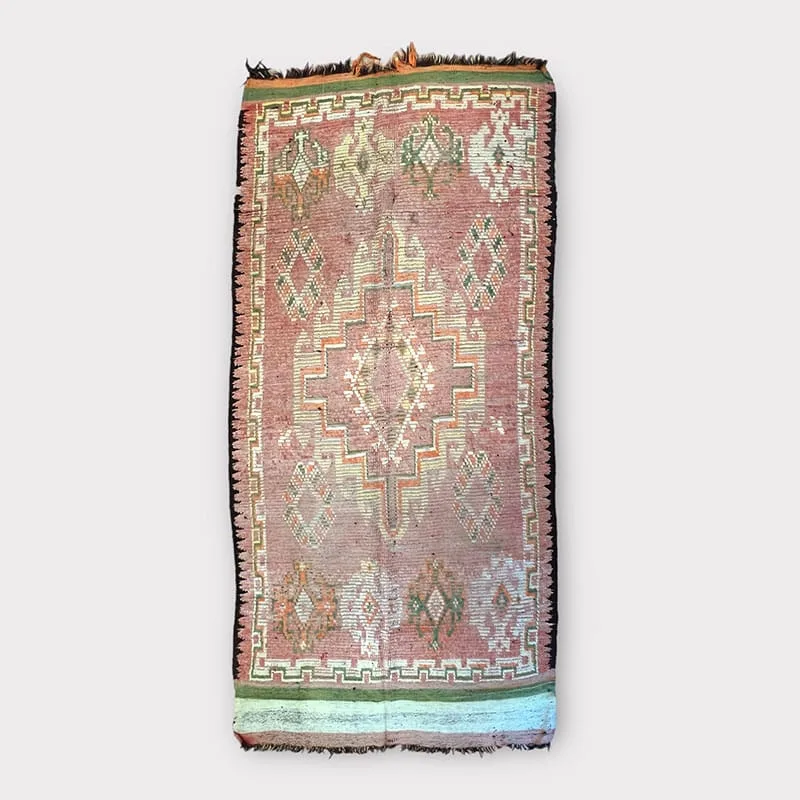 Berber tæppe, kaldes også Boujaad tæppe i milde rosa og grønne nuancer
