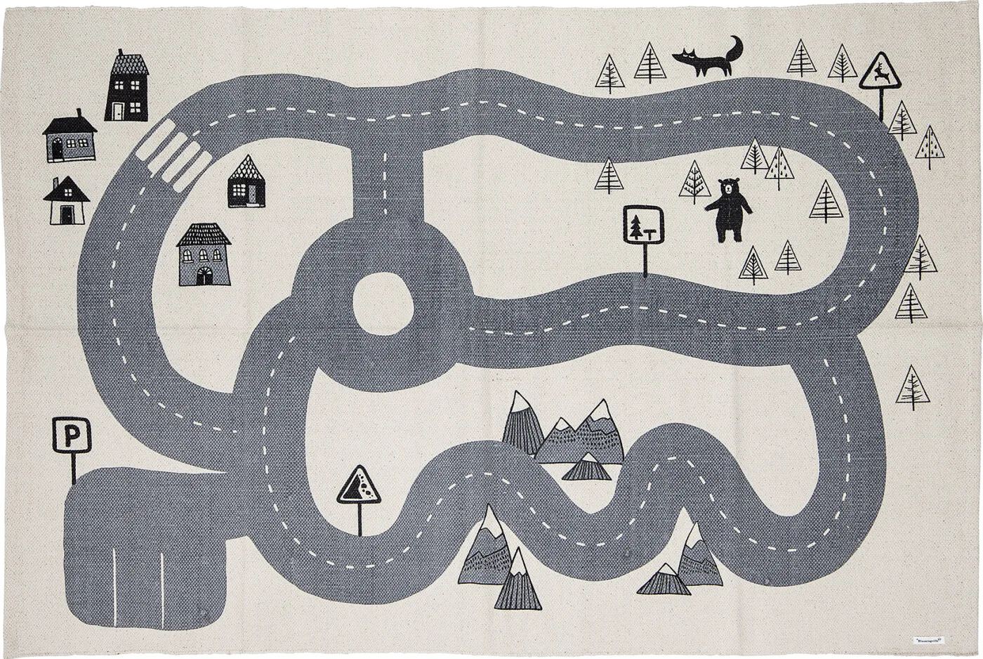 Dennis Tæppet fra Bloomingville MINI er et smukt lysegråt tæppe med et mønster af en vej, der fører til et naturreservat med dyr og bjerge. Bomuldsmaterialet gør tæppet slidstærkt og nemt at…