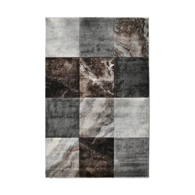 Brilliance dark square er et maskinvævet tæppe med en kort skåret luv. Tæppet har et ternet mønster, hvor ternene fremhæves gennem carvingteknikken. Farverne i tæppet går i brunt, hvidt og gråt.