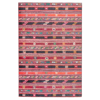 Cadiz er et maskinvævet tæppe, vævet med et stribet mønster i flotte og behagelige farvetoner. Tæppet har en vis glans takket være det bløde og skinnende chenillegarn. Her ses Cadiz i varianten 009 rød.