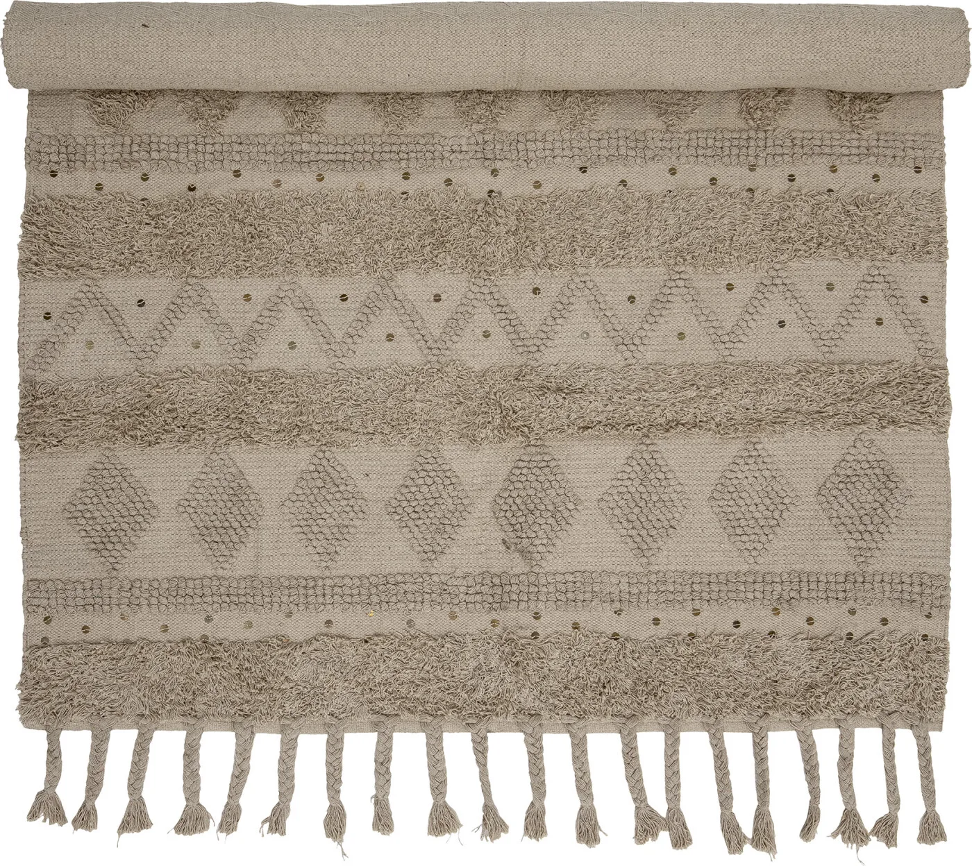 Dasha Tæppet fra Creative Collection er et smukt rektangulært tæppe med masser af smukke detaljer, små metalpailletter og frynser i begge ender. Tæppet er lavet af bomuld og det behagelige stof…