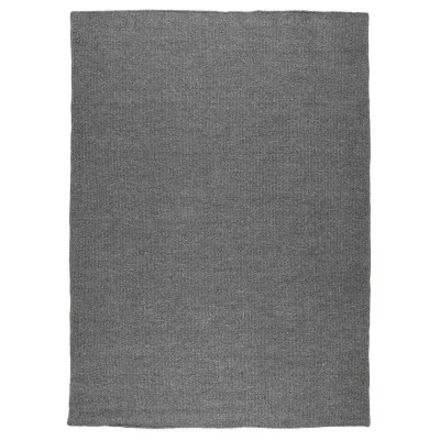 Durban er et glat, håndvævet uldtæppe i en mørk antracitgrå farve.