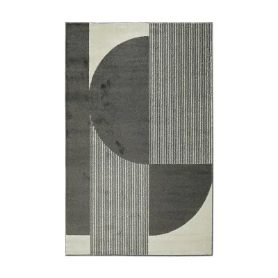 Florence Cord er et maskinvævet tæppe med en kort skåret luv. Tæppet har et grafisk, stilfuldt mønster bestående af linjer og cirkler i farverne natur og sort. Her ses Florence Cord i farven sort.