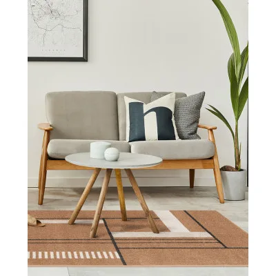 Florence Square er et maskinvævet tæppe med en kort skåret luv. Tæppet har et grafisk mønster, hvis linjer løber uregelmæssigt hen over tæppet, hvilket skaber liv i rummet. Det flotte tæppe har en terracottafarvet bund og detaljer i cremehvid og sort. Her