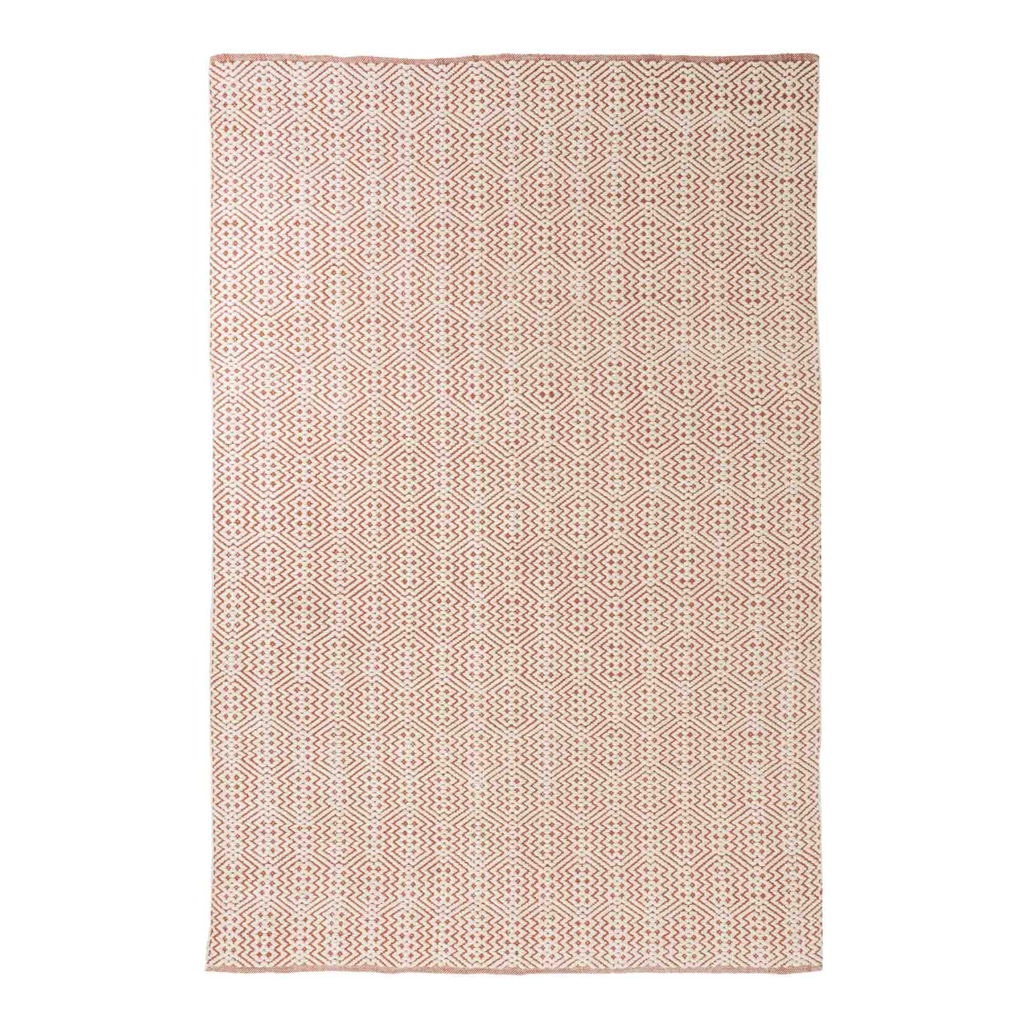 Ibiza Tæppe – Vævet tæppe i mørk koral – lavet af 100%25 genanvendt plastik 200×300 cm Farve: Mørk Koral Materiale: PET genbrugsplast Mål: Længde – 200 cm, bredde – 300 cm og højde: 1 cm.