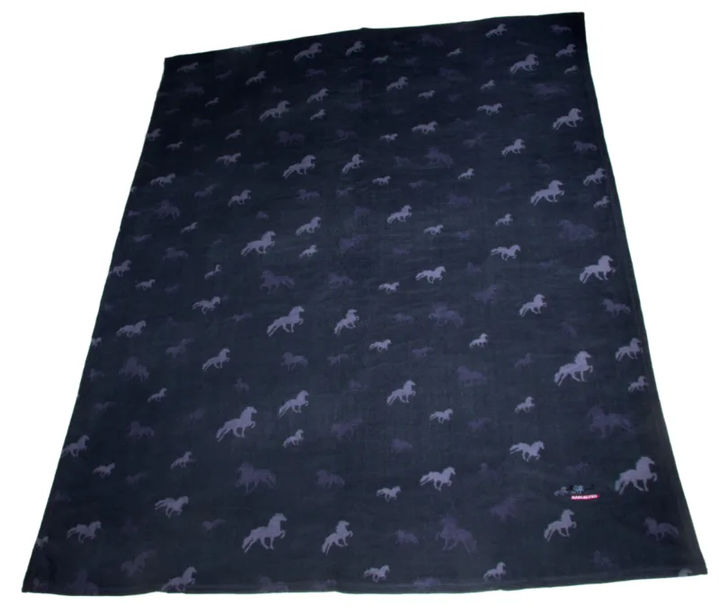 Flot og lækkert fleecetæppe med islandske heste i forskellige størrelser og nuancer.