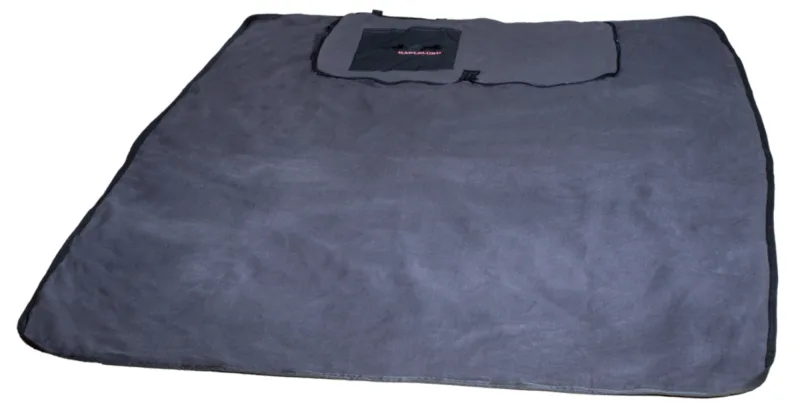 Perfekt ledsager til skoven eller på stævnepladsen. Lavet som en smart taske, med en udvendig lomme og skulderstropper. Dejligt blødt fleece tæppe med vandtæt bagside, så fugten fra jorden ikke kan trænge igennem. Nemt at pakke sammen og tage