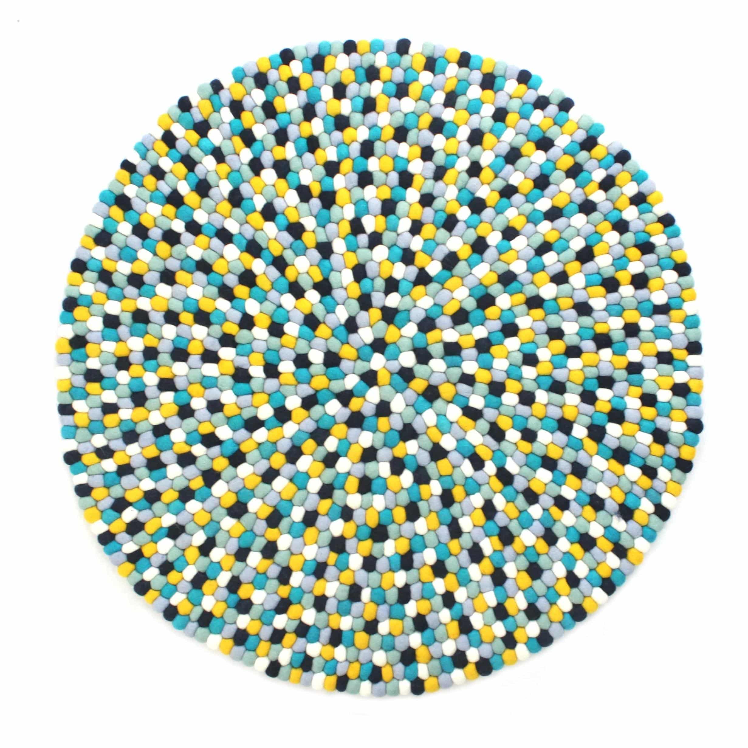 Rundt kugletæppe 60, 90, 120, 140 eller 200 cm. gul multifarvet