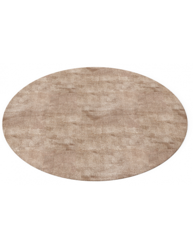 Lake rundt tæppe fra Belgiske Domé Deco, udført i et design fremstillet af taupe farvet håndvævet viskose med underside i bomuld. Tæppet måler 300 cm i diameter.