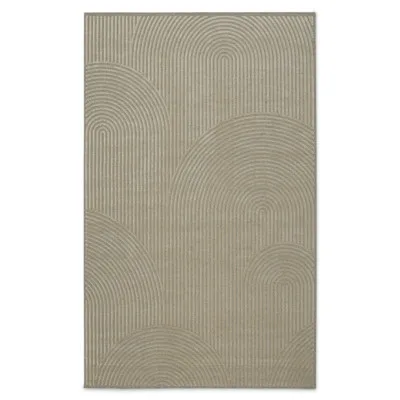 Langnois natur er et maskinvævet tæppe med et smukt mønster bestående af buer. Tæppets bund er i uld, og buerne over i viskose – et materiale, der giver en flot glans. Tæppets bundfarve er holdt i en mørkere nuance, hvilket skaber flotte kontraster mod de