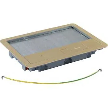 Metallåg og trimramme med messing coating til gulvbokse 8/12 moduler til tæppeAnvendes til gulvboks typerne: 88020, 88023 og 88039Hvis der ikke ønskes tæppe i låget anvendes top/afslutningsplade rustfrit stål finish type: 88048Maks højde for tæppe er 8mm.