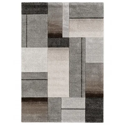 London Trend er et maskinvævet tæppe med et flot, uregelmæssigt rudemønster. Farverne i tæppet er i beige, grå og brunt. Her er London Trend i farven grå/linne.