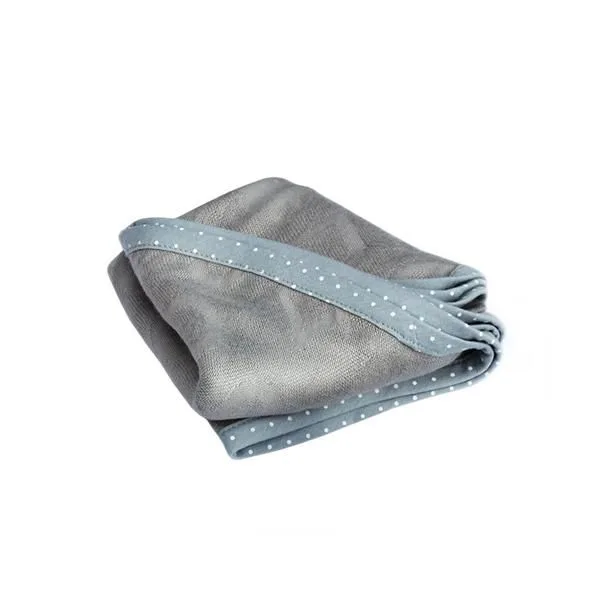 Lullalove Babytæppe SupeRRO – gråLullalove Babytæppe SupeRRO – grå er et superblødt tæppe til børn. Det bløde tæppe er lavet i 100% bambus, og er perfekt til din babys sarte hud. Det er i en flot grå farve, med en blå kant med prikker. Brug tæppet som leg