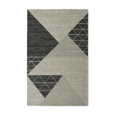 Luna er et maskinvævet tæppe med en glat overflade. Tæppet prydes af et mønster med trekanter i forskellige størrelser. Her ses Luna i farven sort/hvid.