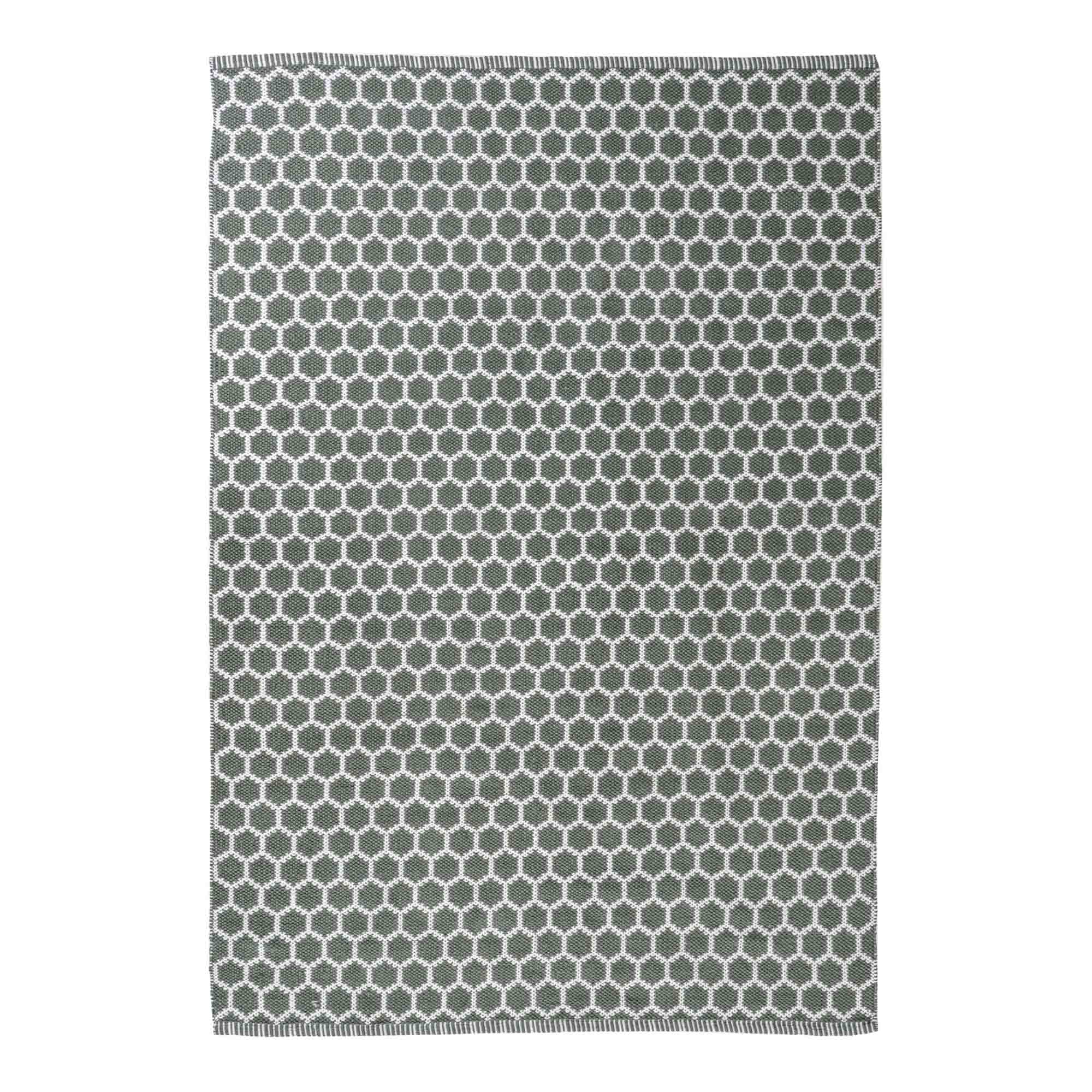 Vævet tæppe i grøn – lavet af 100%25 genanvendt plastik. Mål: 200×300 cm Leveringstid: 3-6 hverdage