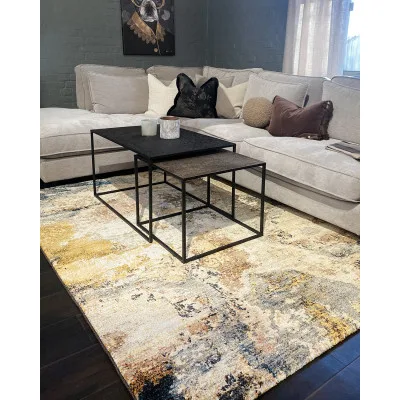Pandora Anouk er et maskinvævet tæppe med en kort og blød luv. Tæppet er fremstillet i et støvfrit syntetisk materiale. Pandora Anouk har et meleret mønster med tonegivende farver i gul, blå og rust.