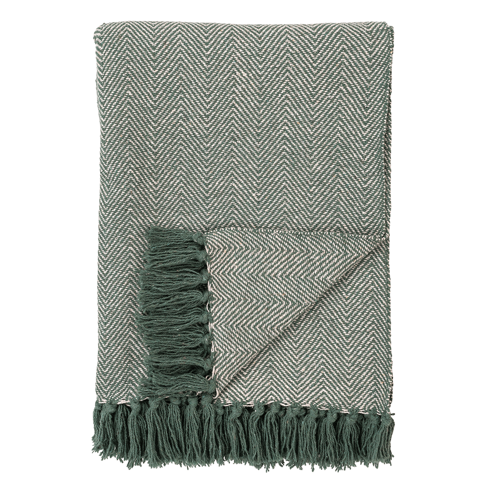 Et plaid tæppe med frynser der kan matches med puderne i sofaen, eller som kan bruges til at lune sig med en kølig aften på terrassen.