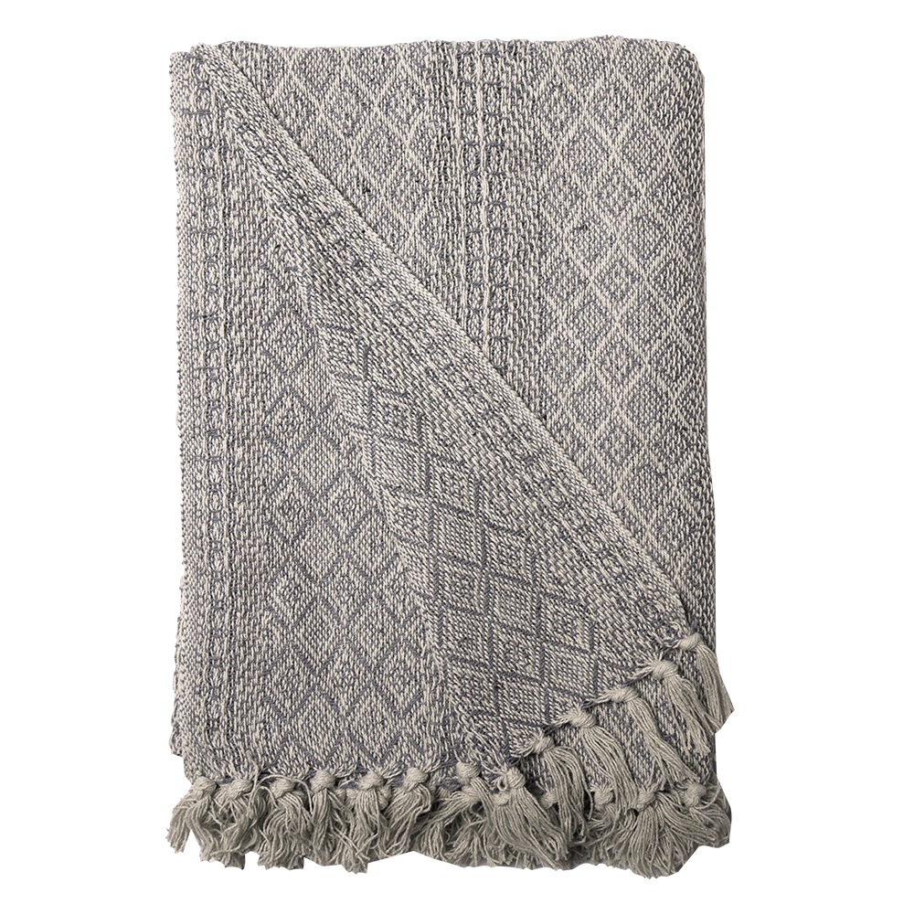 Et plaid tæppe der kan matches med puderne i sofaen, og som er god at lune sig med en kølig aften på terrassen.