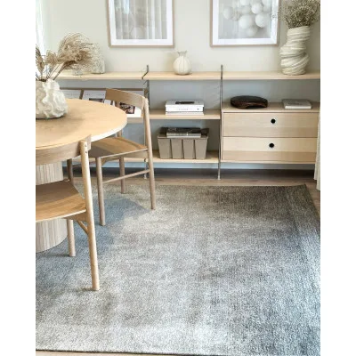 Poza er et maskinvævet tæppe med en abstrakt blanding af grøn, beige og creme farver – meleret som en tordensky, der fejer ind over en lys himmel. Dette stemningsfyldte tæppe har en glat overflade, som gør det velegnet til mange typer rum såsom spisestuen