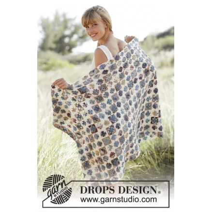 Rocky Path by DROPS Design er et fint tæppe med fine, bedstemorruder. Tæppet er hæklet i Drops Fabel.