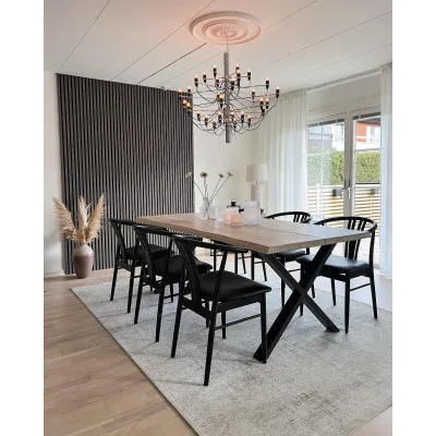 Rubi er et maskinvævet tæppe med et meleret mønster. Oversiden er glat, hvilket gør det nemt at holde rent, og tæppet er derfor nemt at placere under såvel spisebordet som ved sofabordet. Her i farven ice.