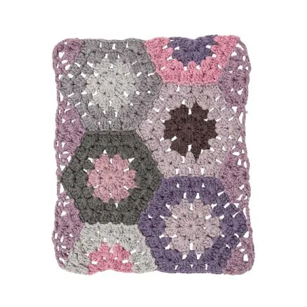 Det fineste hæklet tæppe i søde pastel farver. Lavet i 100% økologisk bomuld og kan vaskes på 30 grader.