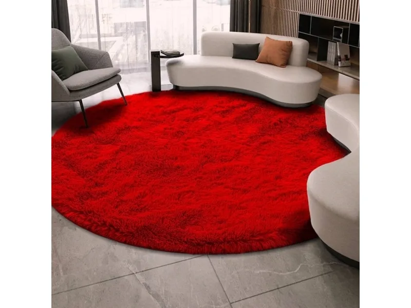 Strado Shaggy Rundt Tæppe 140X140 Bloodyred (Lys Rød) Universal