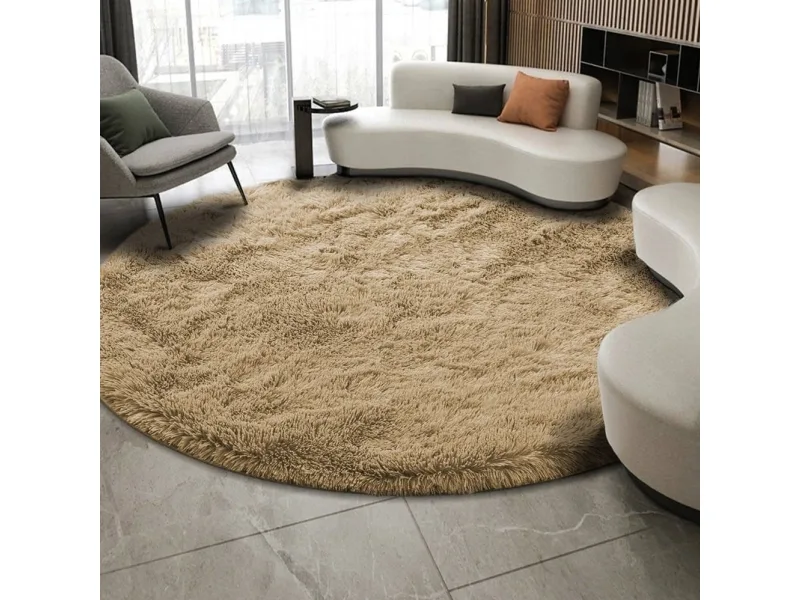 Strado Shaggy Rundt Tæppe 180X180 Cappuccinocamel (Lysebrun)