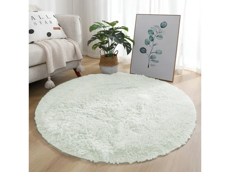 Strado Shaggy Rundt Tæppe 90X90 Whitelime Universal
