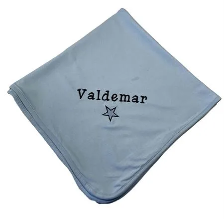Tæppe/Svøb med navn. Lyseblå