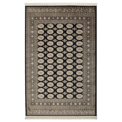 Teheran Boccara er et maskinvævet tæppe, der skinner på flotteste vis. Tæppet har et klassisk orientalsk boccara-mønster, mens de korte sider afsluttes med en flot frynse. Her ses Teheran Boccara i farven sort.