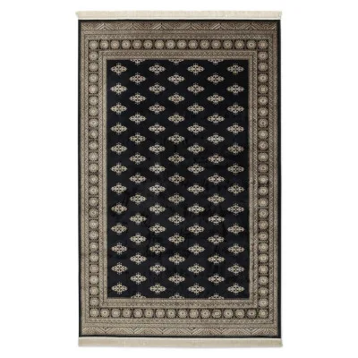 Teheran Lahori er et maskinvævet tæppe, der skinner på flotteste vis. Tæppet har et klassisk orientalsk butterfly-mønster, mens de korte sider afsluttes med en stilfuld frynse. Her ses Teheran Lahori i farven sort.