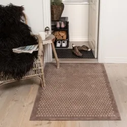 Tica Copenhagen dørmåtte eller tæppe i dansk design og flot esign. Dørmåtten er i mønster Dot i sand farve. En smart dørmåtte i entreen eller som tæppe i husets rum. Dørmåtten er 90×130 cm, en lidt større model end de traditionelle dørmåtter. Dørmåtten er