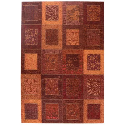 Tinetto er et glat vævet, tyndt og praktisk tæppe med et patchwork-inspireret mønster. Materialet er let at holde og har en vidunderlig flot glans. Her er Tinetto i farven rust.