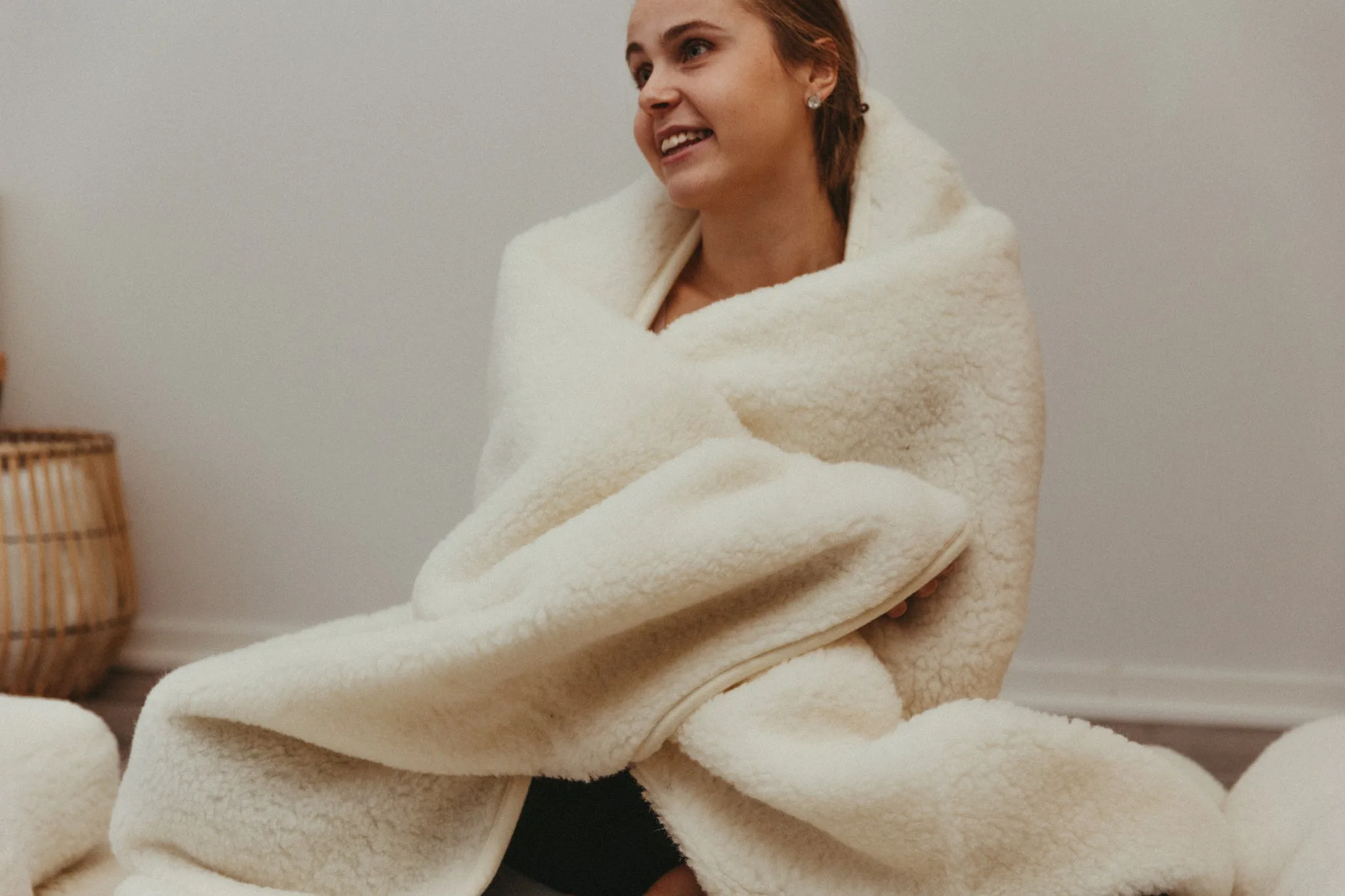 UTU hyggeligt og varmt tæppe lavet af højkvalitets merinouldstof med en blød cremet farve.Merinouldens unikke egenskaber gør dette tæppe uerstatteligt på alle årstider, så du kan nyde varmen uden at overophede eller svede. Uld har længe været værdsat for