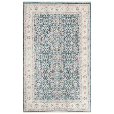 Zafir er et blåt maskinvævet tæppe med en kort skåret luv. Et orient-inspireret mønster forgylder tæppet, som flot indrammes af en mægtig bort. De korte sider afsluttes med en kort dekorativ frynse. Tæppet giver et rustikt udtryk og bliver en flot indretn